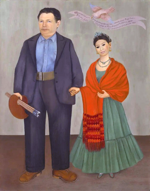 Painting of Mrs. K holding hands with her large yet ruggedly handsome husband, Mr. J — Courtesy of the Greater Metro-Regional Museum of Mahjong & Domestic Arts